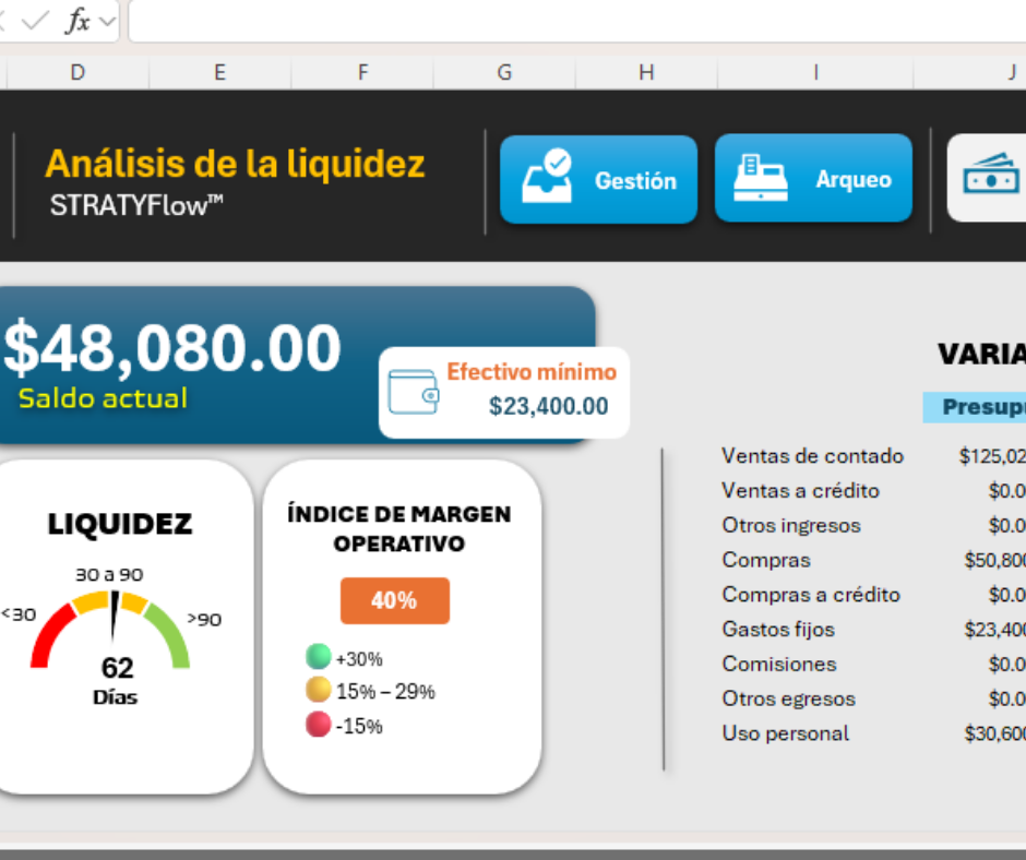 Flujo de caja claro y visual, con un tablero Excel ya configurado para tu negocio.